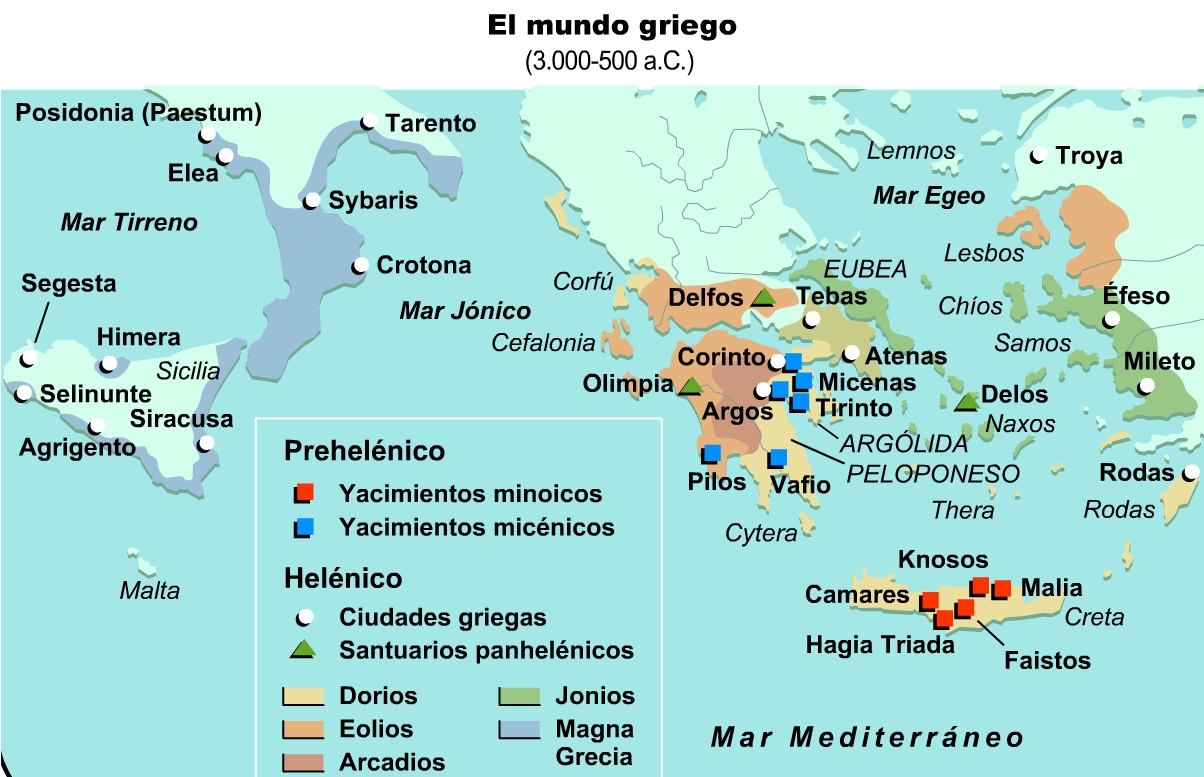 Mapa del mundo griego entre el 3000 y el 500 a.C